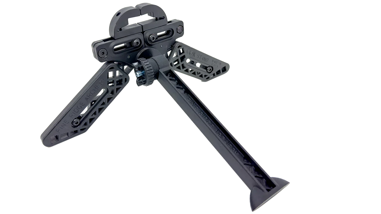 The Kwik Stand Tri-Pod adds the stability to top heavy bows and parallel limbs. The Tripod leg is fully adjustable featuring a hirth gear to lock it into place when you find your bows sweet spot. Long gone are the days of your cams being in the dirt. The leg trough accepts most cams on the market keeping them clean and ready to shoot.
