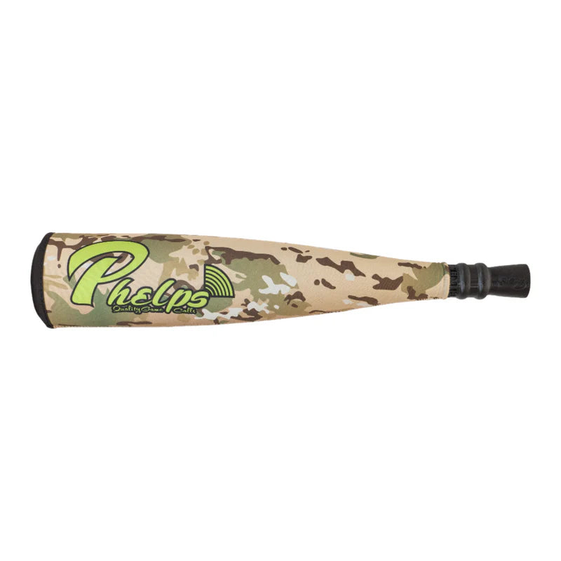 Manufactured as a one-piece aluminum bugle tube, the Phelps METAL balances the elk hunters' demand for a weight-conscious, compact design and the ability to project loud, crisp calls. The aluminum construction provides more sound than plastic and is engineered to meet the frequency of bull elk. With the option of our interchangeable flared or the external mouthpiece, all levels of calling ability are covered. The bugle has been sandblasted, anodized black, and wrapped in a closed-cell neoprene sleeve to eliminate glare and unwanted noise.