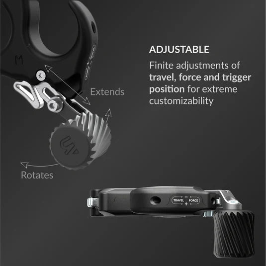 • Convenient Adjustability - Micro-adjust wide ranges of force and travel. The force can be set as feather-light or super-heavy without needing to swap springs.