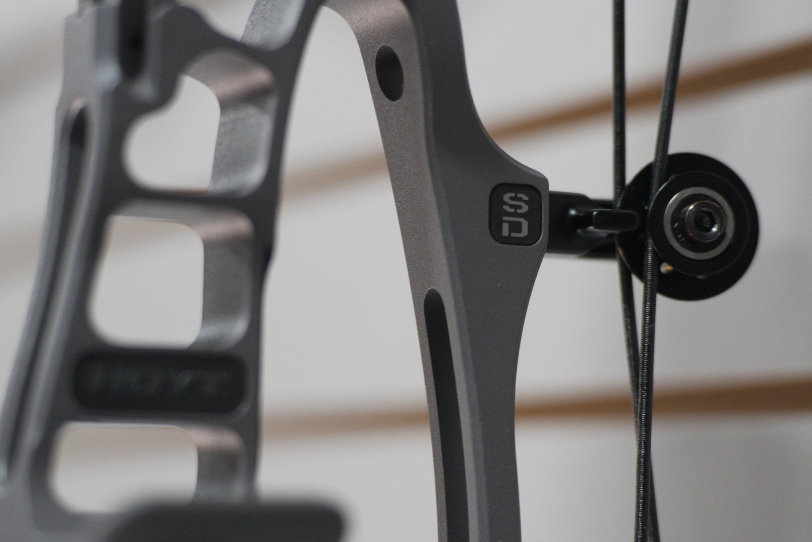 Customer Trade-in Hoyt Alpha AX-2 SD bare bow. Perfect bow for shorter draw lengths and lower poundage. Draw Length range of 23"-27" and 50 lb peak weight limbs. Tombstone grey.